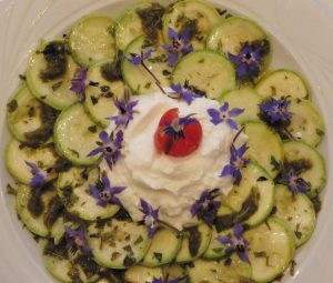 Every morning we pick the young zucchinis from our garden; needless to mention they are organically grown…. We marinate them with organic extra virgin olive oil, lemon juice, lime juice and fresh herbs; spearmint, basilica, mint and lemon verbena. We serve them in a unique dish with ‘xygalo’ (sour cheese … Continue reading ‘Marinaki’, salad with marinated young zucchinis and borage