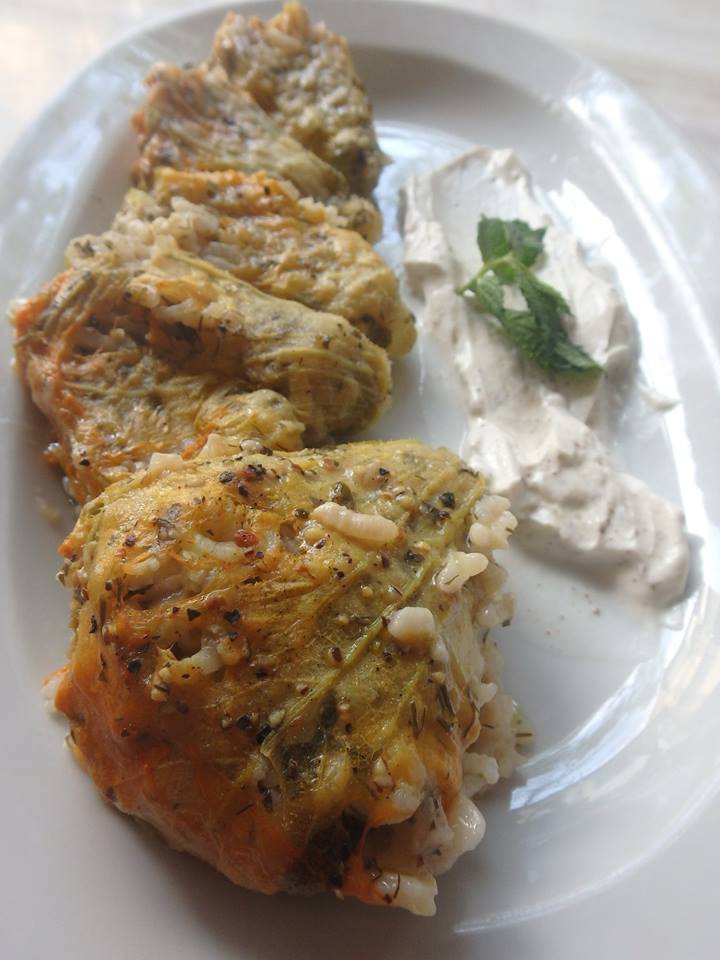 The classic simple recipe from Smyrni; stuffed with rice, onion, mint and tomato, cooked in a pot with lemon.