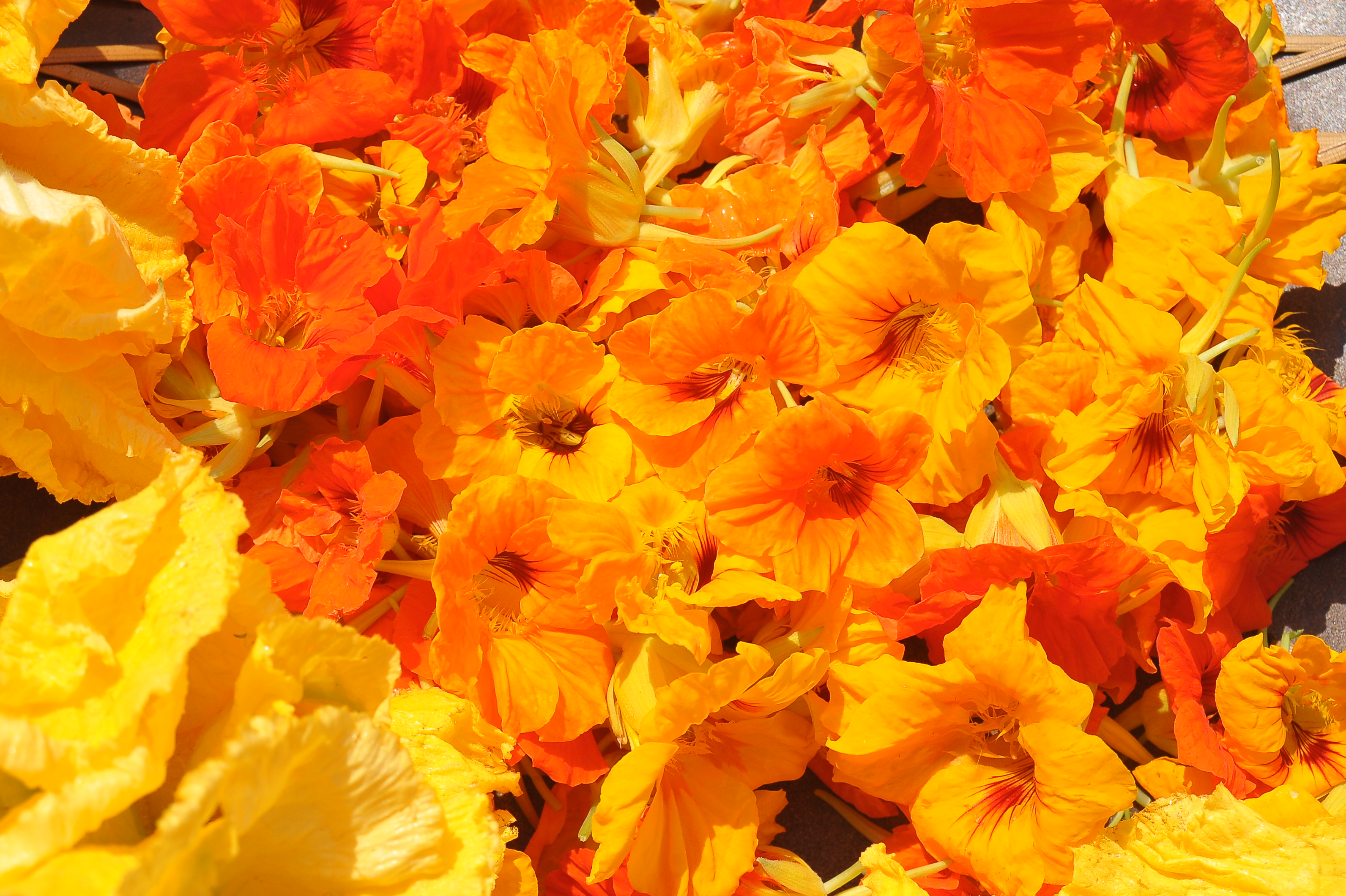 Τους καλοκαιρινούς μήνες σερβίρουμε κολοκυθανθούς που παράγουμε στον κήπο μας στον Χορτιάτη, βρώσιμα λουλούδια (Καλέντουλα, Καπουτσίνο, Πουράντζα), βλήτα, γλυστρίδα και φρέσκια ρίγανη με τα οποία φτιάχνουμε πρωτότυπες και πολύ γευστικές σαλάτες.